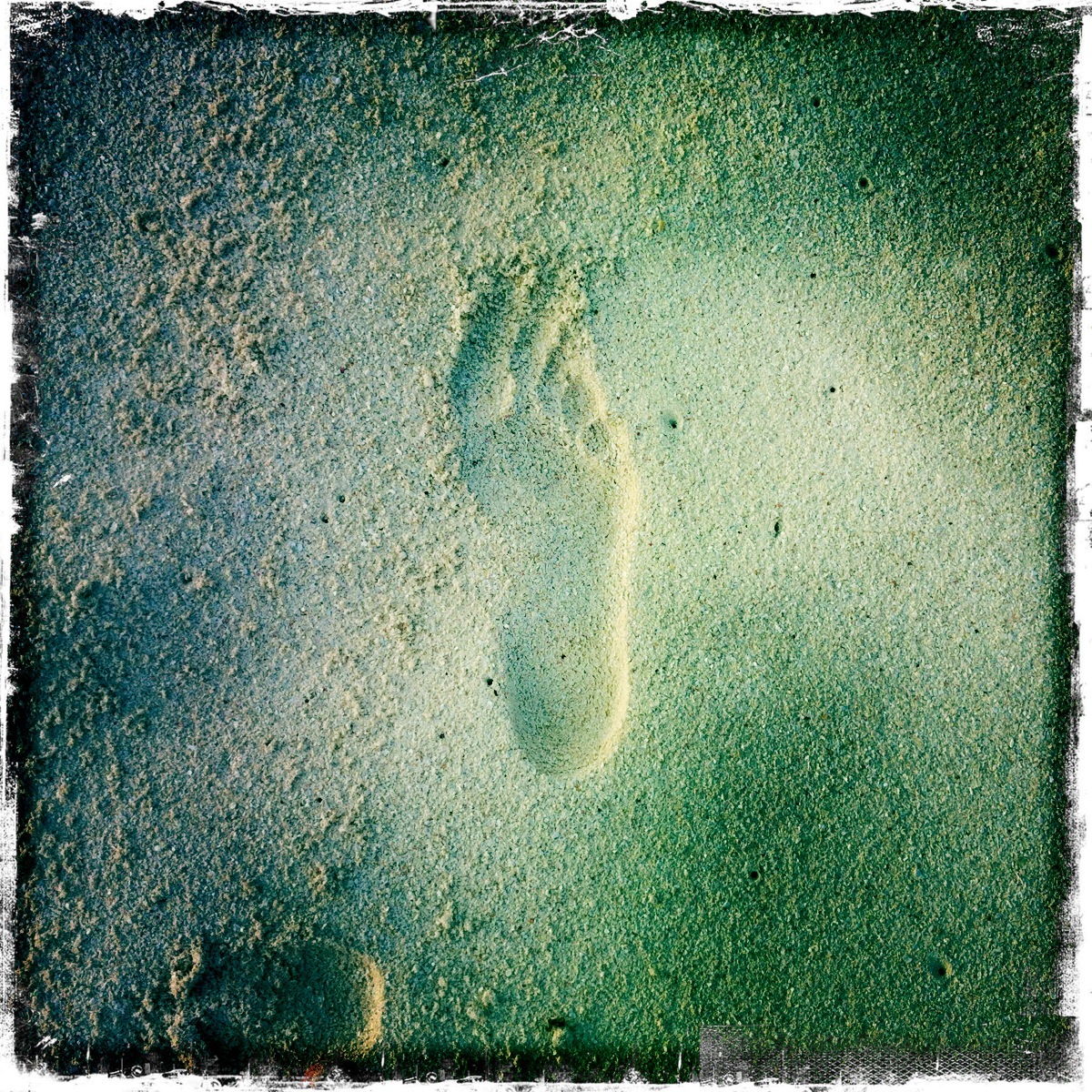 Shining footprints on the wet sand