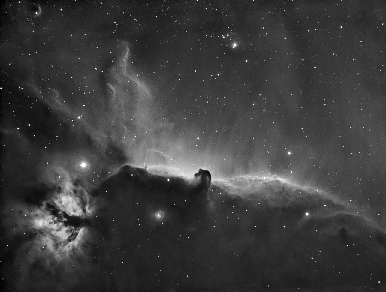 IC434 in Ha WF The Horsehead Nebula, a part of the nebula IC434 and also known as Barnard 33, was first recorded in 1888 on a photographic plate taken at the Harvard College Observatory. Its coincidental appearance as the profile of a horse's head and neck has led to its becoming one of the most familiar astronomical objects.